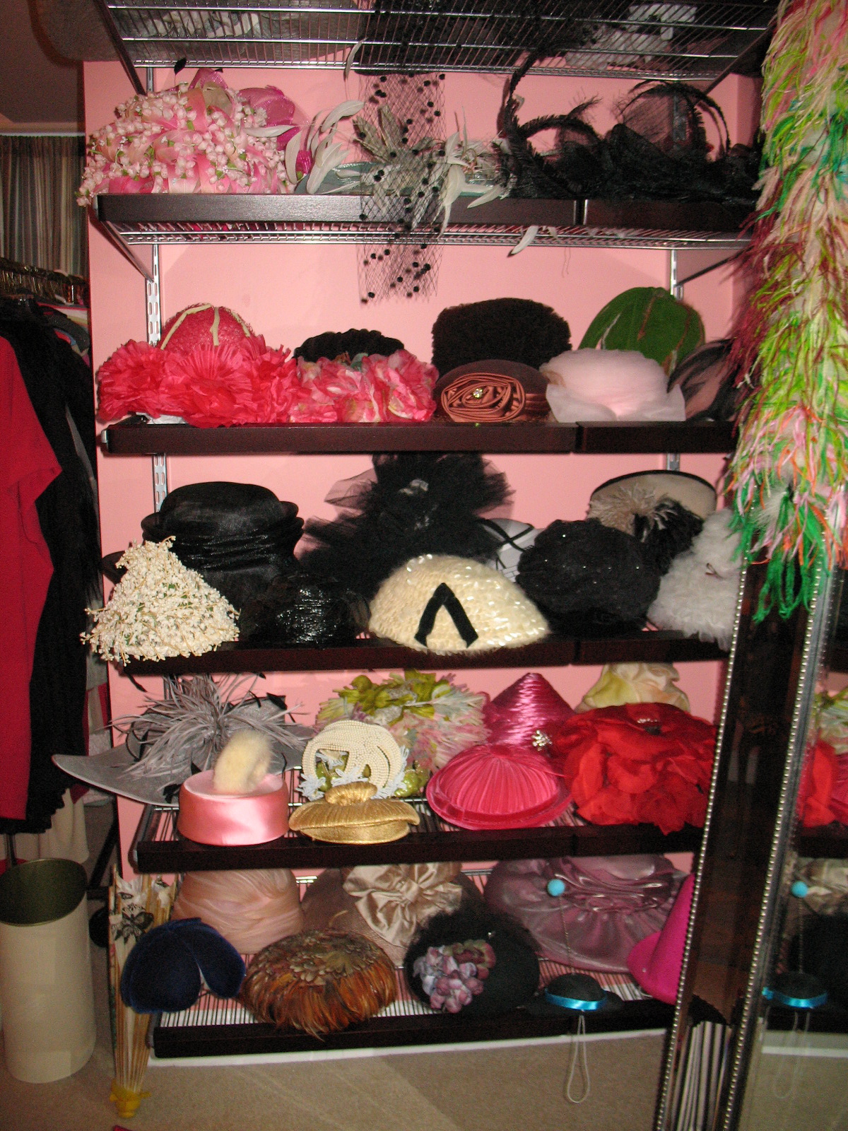 Today is my birthday and we are going to take a little tour of my inner sanctum - my dressing room. Several years back, I converted an extra bedroom into my dressing room. Using Elfa shelving from The Container Store, now my shoes, handbags, and hats each have their own wall. The walls were painted to match a Thomas Pink shopping bag. The dresser houses my jewelry and was my daughter's dresser in her nursery. The striped silk taffeta curtains are from Restoration Hardware and stay closed at all times. The chairs are antiques I bought at auction and had covered in leopard velvet and topped them with feather pillows from Anthropologie.